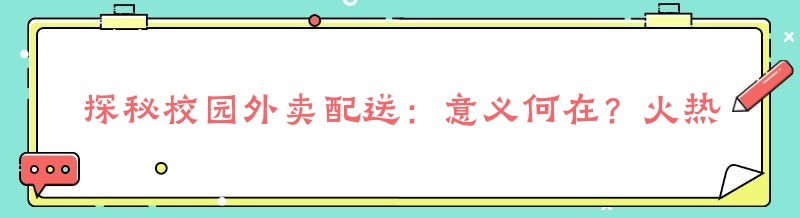 在大学校园里,外卖配送已经成为了一道独特的风景线。无论是清晨的早餐、中午的正餐还是夜晚的宵夜,总能看到外卖小哥穿梭在校园的各个角落。校园外卖配送的兴起,不仅改变了大学生的生活方式,也为餐饮行业带来了新的机遇和挑战。那么,对校园外卖配送进行研究究竟有何意义?校园外卖如此火热的原因又是什么呢?本文将对此进行深入探讨。