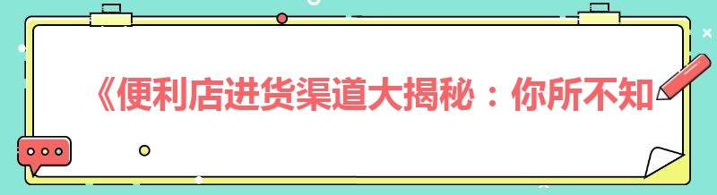 《便利店进货渠道大揭秘:你所不知道的那些事儿》