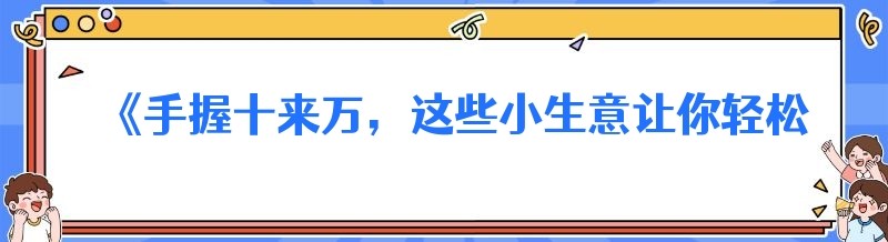 在创业的道路上,资金是一个重要的考量因素。如果你手头有十来万的资金,想要寻找一个合适的小生意来投资,那么这篇文章将为你提供一些有价值的建议。