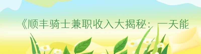 在当今社会,越来越多的人选择利用业余时间做兼职来增加收入。而随着外卖和跑腿行业的蓬勃发展,顺丰骑士兼职成为了许多人的选择。那么,顺丰骑士兼职一天到底能跑多少钱?一单又能挣多少钱呢?今天,我们就来深入了解一下。