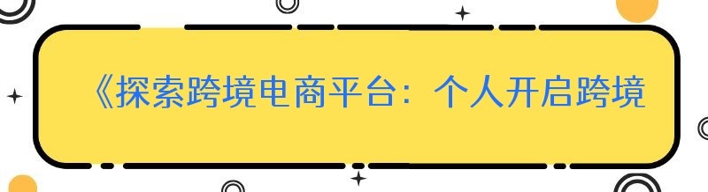 编辑 《探索跨境电商平台:个人开启跨境之旅的指南》