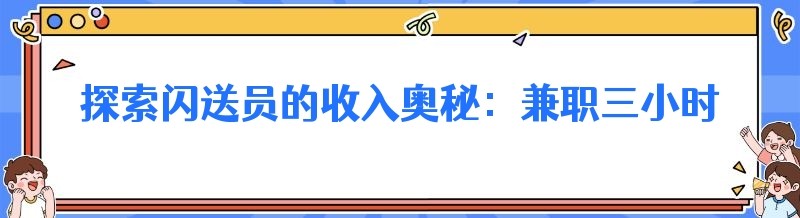探索闪送员的收入奥秘:兼职三小时与日收入全解析