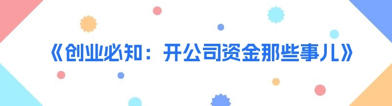《创业必知:开公司资金那些事儿》