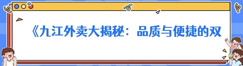 《九江外卖大揭秘:品质与便捷的双重体验》