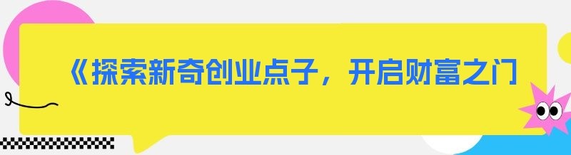 《探索新奇创业点子,开启财富之门》
