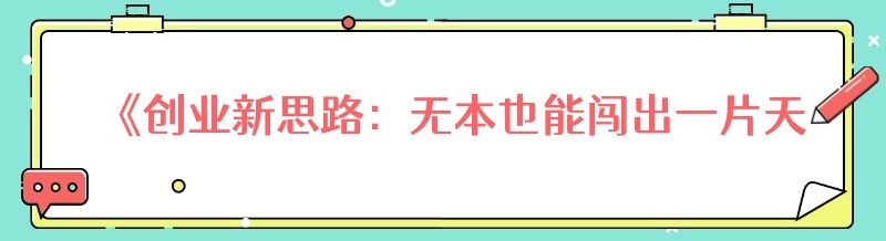 - 无本创业需要不断创新,才能在激烈的市场竞争中立于不败之地。在创业过程中,要保持创新精神,不断推出新的产品和服务,满足客户的需求。