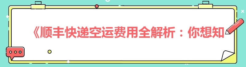 《顺丰快递空运费用全解析:你想知道的都在这里》