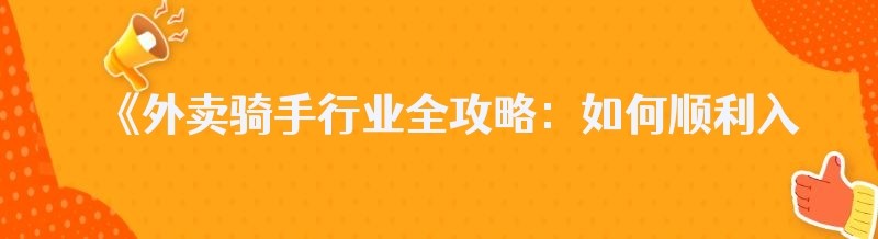 《外卖骑手行业全攻略:如何顺利入行并成为优秀骑手》