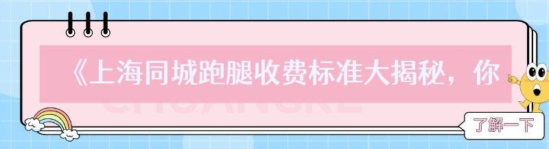 《上海同城跑腿收费标准大揭秘,你了解多少?》
