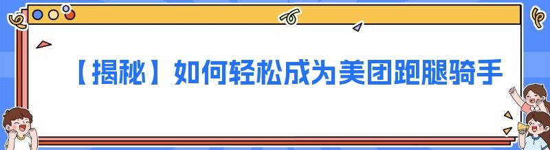 【揭秘】如何轻松成为美团跑腿骑手与众包骑手