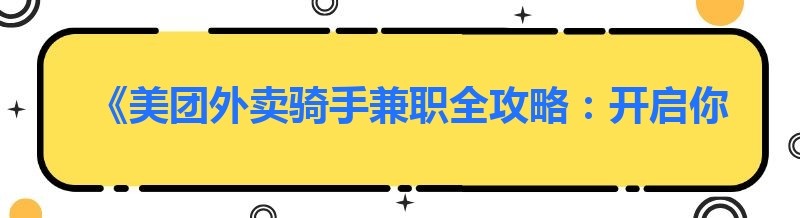《美团外卖骑手兼职全攻略:开启你的灵活赚钱之旅》
