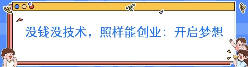 创业,这个充满魅力与挑战的词汇,让无数人为之向往。然而,对于许多怀揣创业梦想的人来说,没钱没技术似乎成为了难以逾越的障碍。难道没有资金和技术,就只能望“业”兴叹吗?答案是否定的!在这个充满机遇的时代,即使你一穷二白,只要有决心、有创意、有方法,依然可以开启属于自己的创业之路。