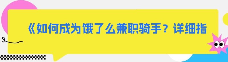《如何成为饿了么兼职骑手?详细指南在此》