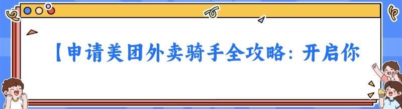 【申请美团外卖骑手全攻略:开启你的外卖配送之旅】