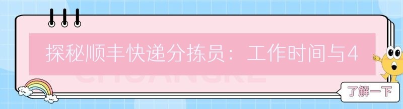 在当今物流行业飞速发展的时代,快递分拣员作为物流环节中至关重要的一环,其工作情况备受关注。尤其是顺丰这样的知名快递企业,其分拣员的工作时间以及是否有4小时兼职机会,更是许多人想要了解的。