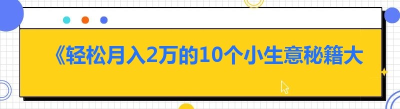 《轻松月入2万的10个小生意秘籍大公开!》