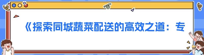 《探索同城蔬菜配送的高效之道:专业软件与APP平台的崛起》