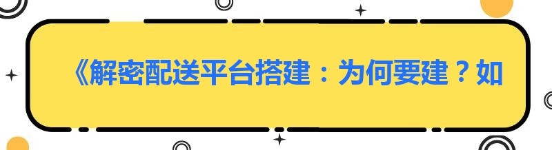 《解密配送平台搭建:为何要建?如何去搭?》