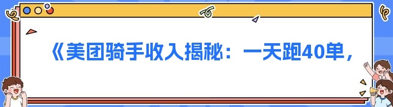 《美团骑手收入揭秘:一天跑40单,一个月能赚多少?以及搭建外卖平台的那些事儿》