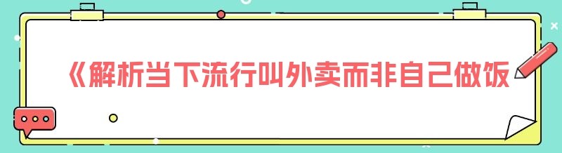 在当今社会,叫外卖已经成为了一种非常普遍的现象,越来越多的人选择通过外卖平台来解决饮食问题,而不是自己亲自下厨做饭。那么,究竟是什么原因导致了这种趋势的出现呢?