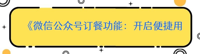 《微信公众号订餐功能:开启便捷用餐新时代》