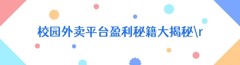 在当今的校园生活中,外卖已经成为了学生们不可或缺的一部分。随着互联网技术的发展,校园外卖平台也如雨后春笋般涌现。那么,校园外卖平台如何才能实现盈利呢?