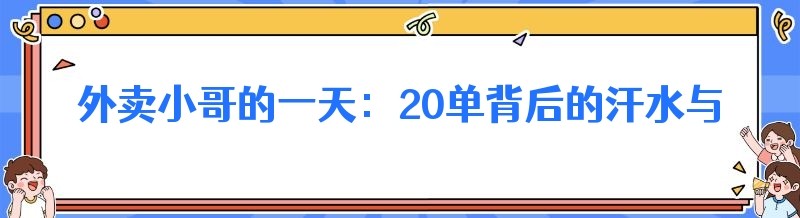 在城市的大街小巷,我们总能看到外卖小哥忙碌的身影。他们风里来雨里去,为人们送去一份份美食。然而,对于他们来说,一天送20单外卖到底累不累?他们是不是生活中最辛苦的人呢?让我们一起走进外卖小哥的世界,探寻答案。