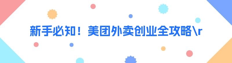 新手必知!美团外卖创业全攻略