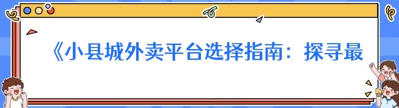《小县城外卖平台选择指南:探寻最适合的送餐APP》