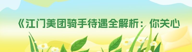《江门美团骑手待遇全解析:你关心的都在这里》