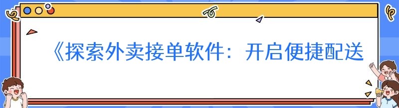 《探索外卖接单软件:开启便捷配送之旅》