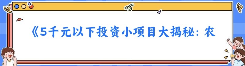《5千元以下投资小项目大揭秘:农村小投资办厂的致富之路》