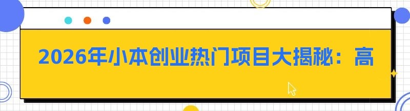 2026年小本创业热门项目大揭秘:高利润生意等你来选