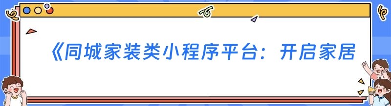 编辑 《同城家装类小程序平台:开启家居服务新未来》
