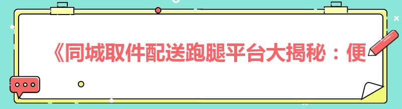 《同城取件配送跑腿平台大揭秘:便捷生活的多样选择》