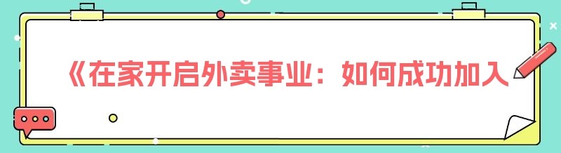 在这个充满机遇与挑战的时代,越来越多的人怀揣着创业梦想,其中在家开私房外卖成为了不少人的选择。想象一下,在自己温馨的家中,烹饪出一道道美味佳肴,然后通过外卖平台将这份美味传递给更多的人,这是多么美好的事情啊!然而,对于那些想在家里做私房外卖并加入美团的人来说,可能会面临一些困惑和挑战。别担心,本文将为你详细介绍如何顺利加入美团,开启你的外卖创业之旅。