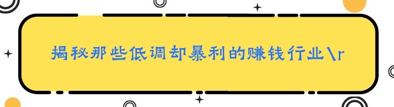在商业的广阔天地中,有些行业看似平凡无奇,甚至毫不起眼,但实际上却蕴含着巨大的财富潜力。这些行业可能没有华丽的外表和高曝光度,但它们却以独特的方式默默地创造着可观的利润。今天,就让我们一起揭开这些低调却暴利的赚钱行业的神秘面纱,看看你是否对它们有所了解。