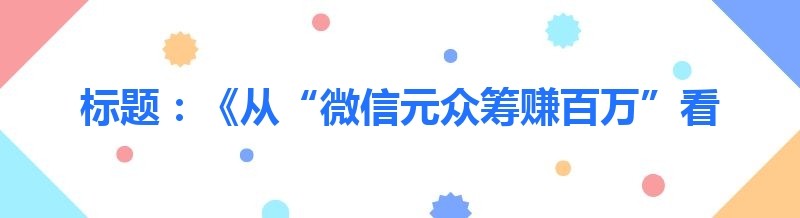 标题:《从“微信元众筹赚百万”看网络众筹的是与非——兼谈有房有车者得病众筹现象》