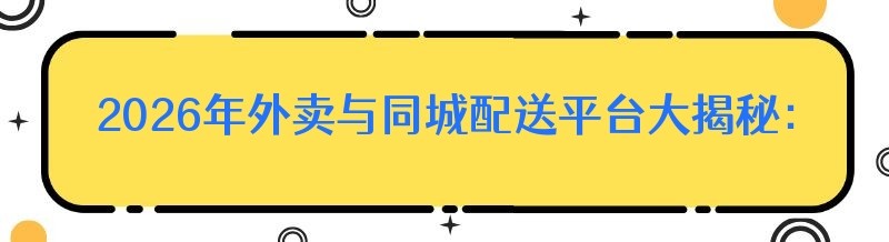 2026年外卖与同城配送平台大揭秘:究竟哪个才是最佳之选?