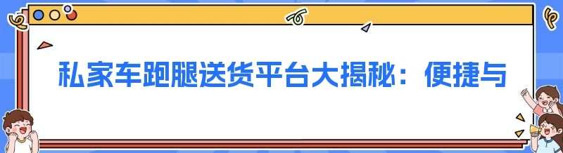 私家车跑腿送货平台大揭秘:便捷与机遇并存