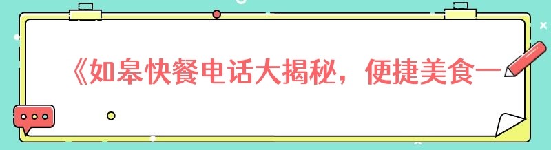 在如皋这座充满活力的城市里,快餐已经成为了人们生活中不可或缺的一部分。无论是忙碌的上班族,还是赶时间的学生党,又或是懒得做饭的居民,快餐都能在最短的时间内满足大家的味蕾需求。然而,要找到一家心仪的快餐店并知道其电话号码,有时候并不是一件容易的事情。今天,我们就来为大家揭秘如皋快餐电话,让大家享受便捷美食一键直达的乐趣。