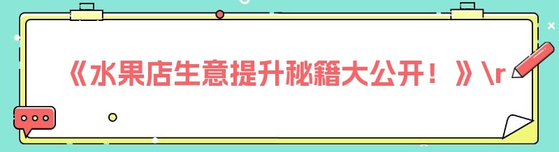 《水果店生意提升秘籍大公开!》