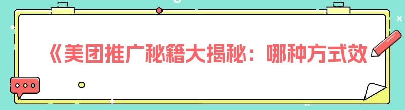 《美团推广秘籍大揭秘:哪种方式效果好?如何让生意火爆起来?》