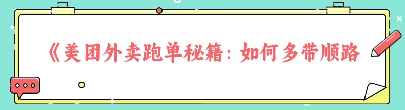 《美团外卖跑单秘籍:如何多带顺路单与获取优质高价单》