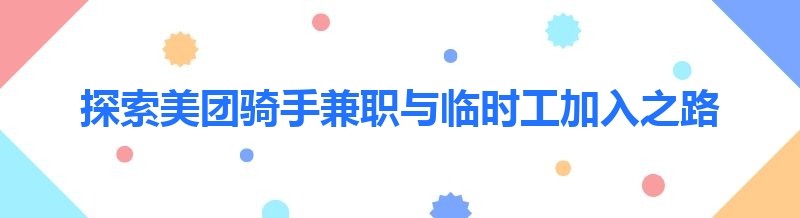探索美团骑手兼职与临时工加入之路