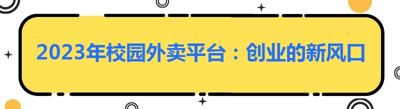 2023年校园外卖平台:创业的新风口还是夕阳产业?