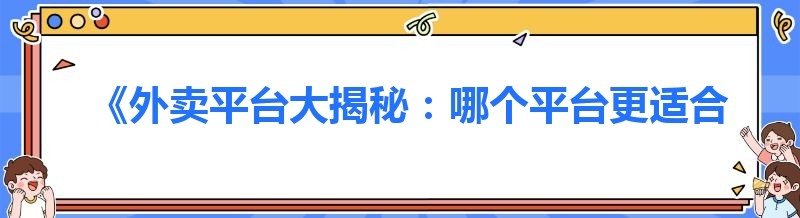 《外卖平台大揭秘:哪个平台更适合你去送外卖?》