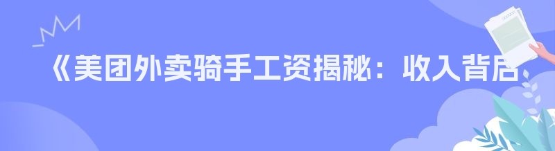 《美团外卖骑手工资揭秘:收入背后的那些事儿》