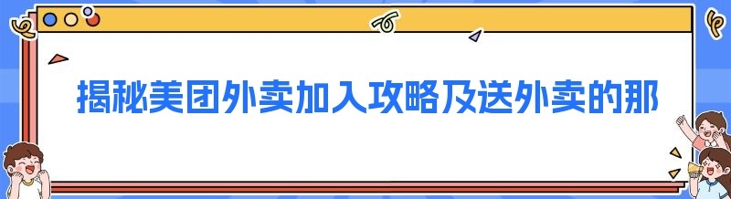 揭秘美团外卖加入攻略及送外卖的那些事儿