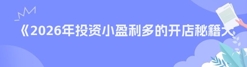 《2026年投资小盈利多的开店秘籍大揭秘》